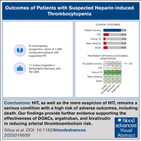 Ведение пациентов с подозрением на гепарин-индуцированную тромбоцитопению (ГИТ) сопряжено со значительными клиническими трудностями. Недостаточно данных о том, как принимаемые решения влияют на клинические исходы, как формируются рекомендации по лечению, основанные на данных с низкой степенью достоверности. Поэтому было проведено исследование, целью которого стал анализ стратегий лечения и клинических исходов у пациентов с подозрением на ГИТ в современной многоцентровой когорте. Это проспективное исследование, в котором приняли участие 1393 пациента с подозрением на ГИТ из 11 центров, которые были разделены на 3 группы: (1) с подтверждённой ГИТ, (2) с отрицательным результатом теста на ГИТ, но с положительными антителами к гепарину/тромбоцитарному фактору 4 (PF4), и (3) с отрицательным результатом теста на ГИТ и без антител. ГИТ диагностировали с помощью теста на активацию тромбоцитов, вызванную гепарином, в качестве эталонного стандарта.